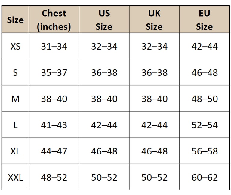 Find Your Perfect Fit! Our size guide is designed to help you choose the right fit with confidence. Since measurements may vary slightly between styles, we recommend checking your size carefully before placing an order. If you're unsure, feel free to reach out—our team is happy to assist you in finding your perfect match!"